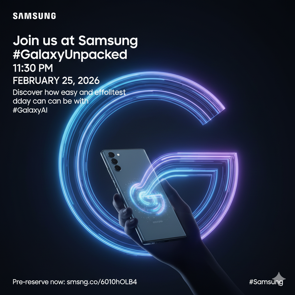 Join us at Samsung #GalaxyUnpacked on February 25, 2026 at 11:30 PM to discover how easy and effortless your day can be with #GalaxyAI.Pre-reserve now: smsng.co/6010hOLB4. #Samsung