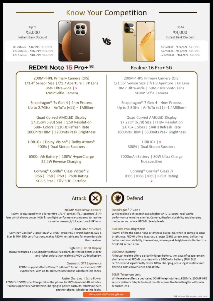 Xiaomi Redmi Note 15 Pro Plus vs Realme 16 Pro Plus vs