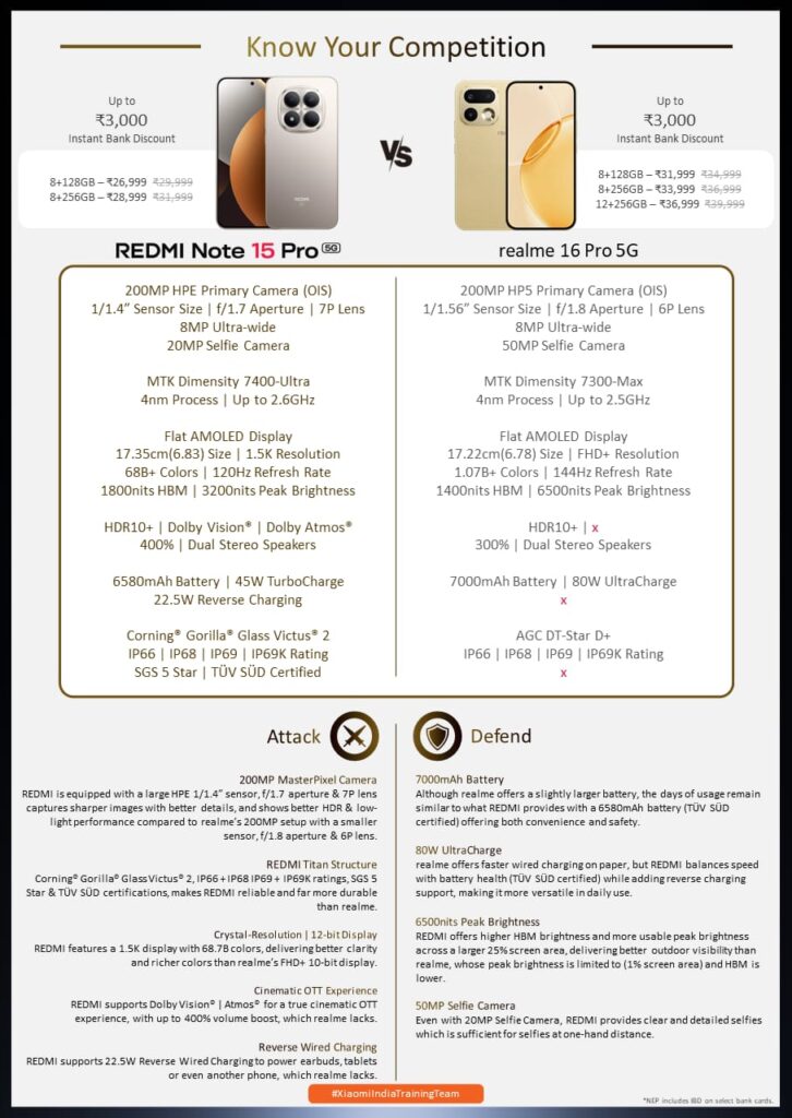 Xiaomi Redmi Note 15 Pro 5G vs Realme 16 Pro 5G