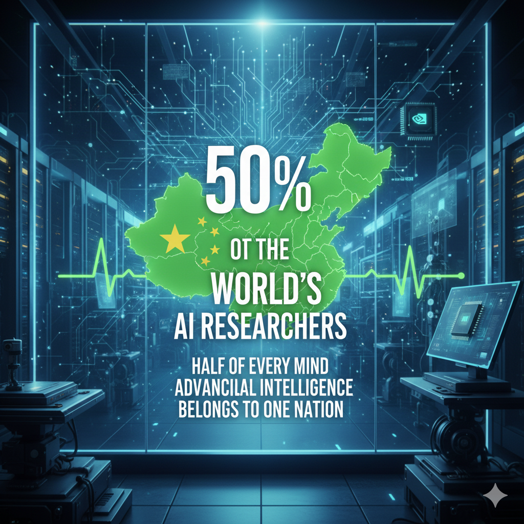 China controls 50% of the world’s AI researchers. Not the developing world. Not Asia-Pacific. China. Half of every mind advancing artificial intelligence belongs to one nation.
